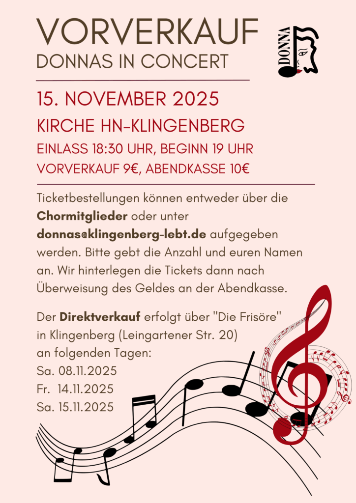Donnas in Concertvon Philip Rügner15. November 20257. November 2025 Wann 15. November 2025 19:00 Zum Kalender hinzufügen ICS herunterladen Google Kalender iCalendar Office 365 Outlook Live Wo Evangelische Kirche Klingenberg Kirchgässle 15, Heilbronn-Klingenberg, 74081